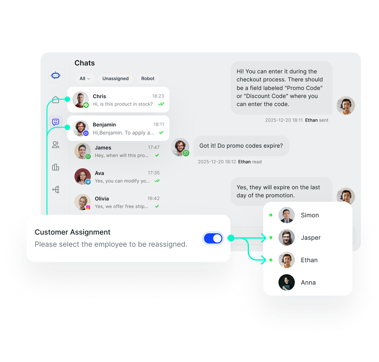 将企业所有团队成员账号集中到 SaleSmartly 平台管理,轻松处理账号归属与继承问题,避免离职员工账号带来的困扰。